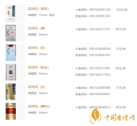 阿詩瑪香煙價格表圖 阿詩瑪香煙最新價格2025