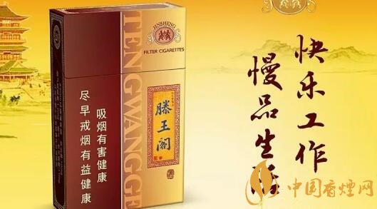 金圣滕王閣(漁舟唱晚),包裝非常漂亮,顯得高檔大氣,。右邊三分之一是棕褐色的,左邊三分之二淡黃色的,煙體正面左邊的中間用藍(lán)色字體赫然寫著滕王閣幾個大字,中間印著一座美麗的滕王閣樓,下面還有山水陪襯,整體包裝彰顯出其高檔大氣的特性。#p#副標(biāo)題#e#