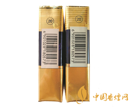 真 假 商標紙側面印刷工藝對比:真煙商標紙側面條紋較窄、顏色較淺,圓圈和數(shù)字“20”顏色較深、位置較低,條形碼位置稍低;假煙商標紙側面條紋較寬、顏色較深,圓圈和數(shù)字“20”顏色較淺、位置偏高,條形碼位置稍高。