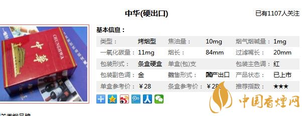 煙界的中華,有如白酒界的茅臺,其歷史積淀和人文底蘊極其豐厚。中華香煙執(zhí)中國煙草之牛耳數載。數十年前,60元的軟中和40元的硬中,價格遠遠高于其它各省的煙草品牌,令眾煙望塵莫及,我們知道了庫克中華是什么煙后,出口版的中華的價格也會比內銷版的價格低,那么這款庫克中華的零售參考價為28元/包。