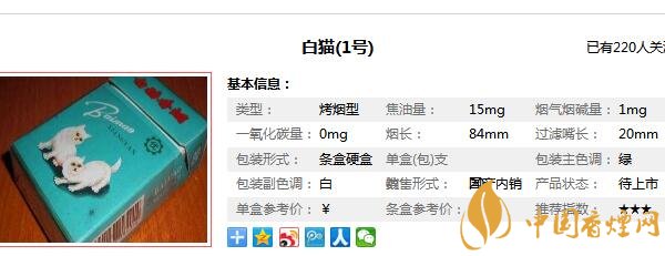 以上內(nèi)容是由香煙網(wǎng)小編為大家收集以及整理的關(guān)于,白貓香煙多少錢(qián)一包相關(guān)信息,想要了解更多信息詳情請(qǐng)點(diǎn)擊:北京香煙多少錢(qián)一包。