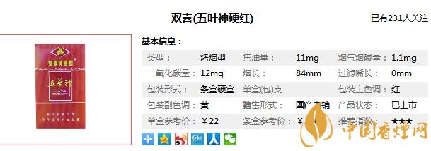 五葉神卷煙品牌作為中國(guó)高檔烤煙型卷煙品牌,創(chuàng)立于1999年,以先進(jìn)的科學(xué)技術(shù)為依托,以升級(jí)中國(guó)卷煙品質(zhì)為己任,贏得了消費(fèi)者的認(rèn)同,那么在對(duì)五葉神香煙價(jià)格圖片進(jìn)行分析之前,先來(lái)看一看這款五葉神2000多少錢(qián)一包,五葉神2000其實(shí)就是現(xiàn)在的雙喜五葉神硬紅,它的零售價(jià)為22元/包。