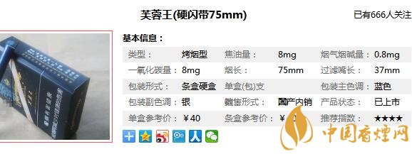以上內(nèi)容是由香煙網(wǎng)小編收集以及整理的關(guān)于,芙蓉王硬閃帶75mm多少錢一包以及芙蓉王硬閃帶75mm價(jià)格相關(guān)的信息,想要了解更多相關(guān)信息請點(diǎn)擊:芙蓉王爆珠煙多少錢。
