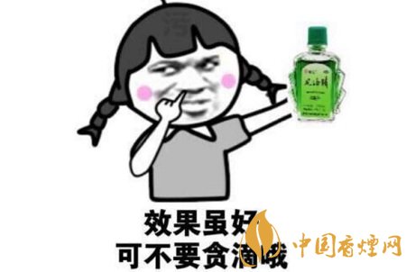 滴過風(fēng)油精的香煙,口感絕對(duì)不一樣,此時(shí)已經(jīng)完全感覺不到香煙帶來的刺激了,反而是濃濃的薄荷的清涼。薄荷可以提神醒腦,直接將直沖腦頂?shù)臒煱a打的煙消云散。如果你意志堅(jiān)強(qiáng)也不愿意浪費(fèi)已經(jīng)點(diǎn)燃的香煙,就繼續(xù)抽,因?yàn)槟阋呀?jīng)感覺不到煙草味,嘴里只有苦苦的味道了(除非你喜歡這個(gè)苦味)……