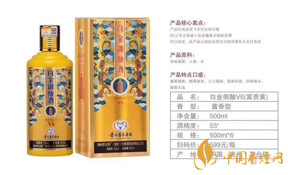 一款酒三個(gè)顏色,滿足不同場(chǎng)合需求。白金御釀V6(喜慶紅)包裝采用飛天仕女祥云圖,3D工藝立體感十足深邃復(fù)古韻味濃厚,凹凸花紋延用中國(guó)傳統(tǒng)節(jié)日喜慶紅色。適合婚宴用酒,V6(商務(wù)藍(lán))產(chǎn)品主題色彩根據(jù)古代唐朝大臣以為演變而來。特別適合商務(wù)贈(zèng)送。V6(富貴黃)此產(chǎn)品大膽采用古代御用黃色為主題色彩。象征富貴,權(quán)勢(shì)。宴請(qǐng)接待自飲,高端大氣上檔次。白金御釀酒V6,屬于白金系列中端偏高產(chǎn)品,市場(chǎng)零售價(jià)格稍高,每瓶在500多元左右。