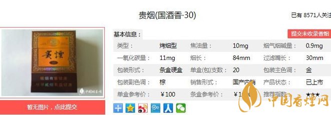 貴煙國酒香30品吸時將煙和酒兩種口感結(jié)合起來,給人一種全新的口感享受。讓業(yè)界側(cè)目的是,自貴煙(國酒香·30)率先上市后第一時間便取得了喜人銷量和良好口碑,產(chǎn)品供不應(yīng)求。經(jīng)香煙網(wǎng)小編市場調(diào)查貴煙國酒香30售價為100元/包。
