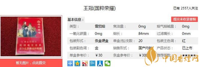 三、王冠國(guó)粹榮耀香煙參數(shù)