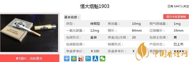 三、恒大煙魁1903香煙參數(shù)