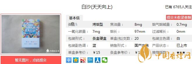 保持白沙品牌醇和的產(chǎn)品風(fēng)格,突出香氣豐富厚實(shí)、飄逸和余味純凈、津甜的質(zhì)量特色。以優(yōu)雅煙草本香和煙草成熟甜香為底韻,襯以堅(jiān)果香、清新果甜香;香氣細(xì)膩、飄揚(yáng)、豐富、綿長(zhǎng);煙氣悠滿、醇和;口感生津返甜。。經(jīng)香煙網(wǎng)小編市場(chǎng)調(diào)查白沙天天向上售價(jià)為15元/包。