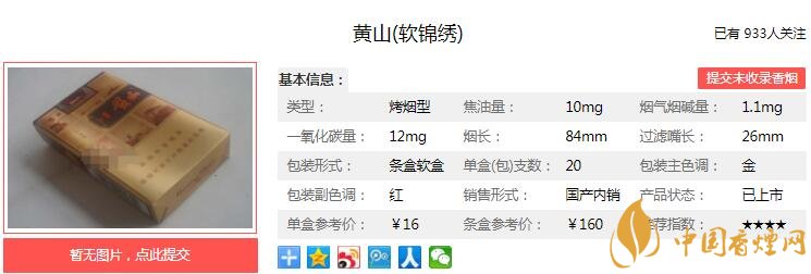 一、黃山軟錦繡香煙價(jià)格