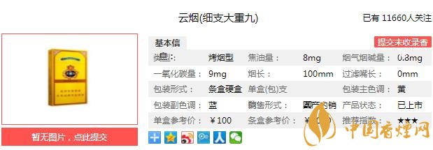 三、云煙(細(xì)支大重九)香煙參數(shù)