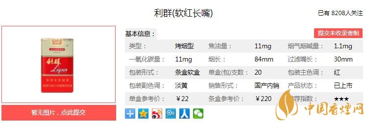 在配方上,選擇國內(nèi)外香氣足、煙堿適中、焦油含量低的優(yōu)質(zhì)煙葉,精心配比,在化學成分比例協(xié)調(diào)的基礎上,配合特殊的優(yōu)質(zhì)進口香精香料,保證其突出的香氣風格和特征。經(jīng)香煙網(wǎng)小編市場調(diào)查利群軟紅長嘴售價為22元/包。
