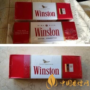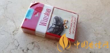 軟包包裝。還是云斯頓經(jīng)典的紅—白—紅三段式版面布局,上端紅色區(qū)域正中有金色飛鷹的圖案。老版雷諾茲版本則是一個(gè)金色王冠的圖案。這個(gè)版本,煙盒下部3/5的面積被忠告圖占據(jù)。比較老式的云斯頓版面配上彩印的忠告圖,視覺上有種特別的感覺。