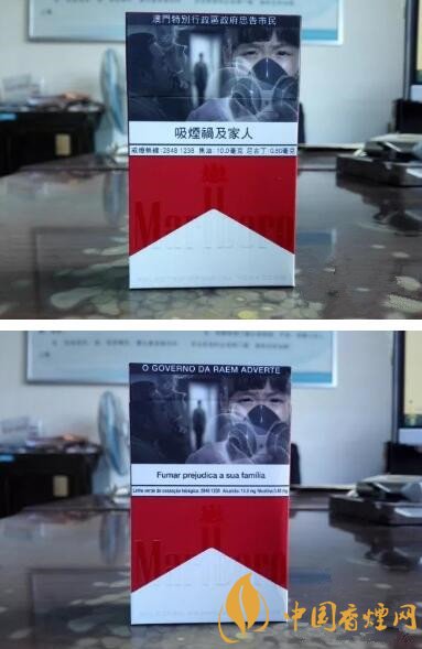 煙盒正反兩面的整體包裝設(shè)計(jì),與香港版本的幾近一致。焦油和煙堿的數(shù)值含量,也與港免相同。煙盒反面的文字為葡語(yǔ),雖然回歸祖國(guó)多年,然而葡萄牙的痕跡依然留存。