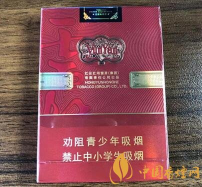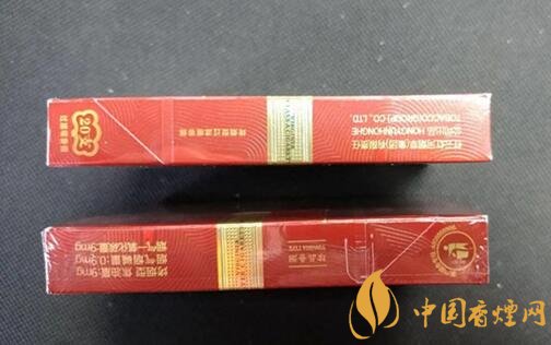 煙盒的左右兩側(cè),金腰帶環(huán)繞在中間,上面還印有黑色的小字英文。左側(cè)還有紅云紅河集團的中英文標(biāo)示和烤煙型過濾嘴香煙字樣。煙盒的右側(cè)則是這款煙的理化指標(biāo):焦油量:9mg,煙氣煙堿量:0.9mg,煙氣一氧化碳量:9mg,還印著珍品香煙字樣。