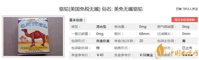 煙民們應(yīng)該都知道,無嘴香煙對我們的身體傷害很大,從80年代后期,過濾嘴香煙出現(xiàn)后,無嘴香煙便慢慢被淘汰了,但是對于一些老煙民來說,無嘴香煙的口感是經(jīng)典,始終無法超越。今天小編就為大家介紹一款無嘴香煙——無嘴駱駝(美國免稅)。下面讓我們一起去看看這款無嘴駱駝的價(jià)格以及抽過的煙民的品吸點(diǎn)評。