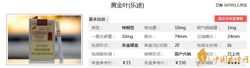 看完對(duì)黃金葉樂(lè)途香煙的介紹,相信你對(duì)這款香煙有了更深的了解。想查詢更多香煙信息,請(qǐng)點(diǎn)擊:黃金葉好抽的5款煙推薦 最后一款性價(jià)比最高