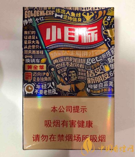 這是中國近兩年我國上市公司沒多久的一款黃金葉香煙,煙盒包裝設(shè)計進(jìn)行比較潮,13元/包的價格也容易被大眾可以接受,這款黃金葉小目標(biāo)的煙嘴呈藍(lán)色,看上去都是比較研究高端,尤其是包裝上“小目標(biāo)發(fā)展成就大夢想”的宣傳語很受人關(guān)注喜愛。