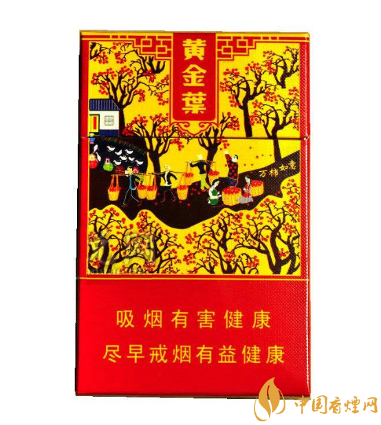 黃金葉(萬(wàn)柿如意)又名黃金葉(金如意),它是一款充滿了鄉(xiāng)土氣息的產(chǎn)品。品名萬(wàn)柿如意,諧音萬(wàn)事如意,傳遞出了一種美好的祝福,比較適合一些喜慶的時(shí)刻,那到底是不是一款好煙呢,當(dāng)然要抽才知道! 正面包裝一眼看過(guò)去很是花哨,仔細(xì)一看,首先給人一種喜慶的感覺(jué),三分之二的正面被一副萬(wàn)柿圖覆蓋,圖案的底色為黃色,上面有成熟的紅色的柿子,還有農(nóng)民挑著收割好的柿子回家的繁榮景象,鄉(xiāng)土氣息,繁榮氣息,喜慶氣息很是濃郁,盒子上部的中央豎款的黃金葉三字真可謂是畫(huà)龍點(diǎn)睛。