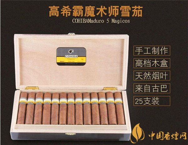 古巴雪茄高希霸魔術(shù)師是一款有品味的男人值得擁有的頂極雪茄,它口感濃郁,淡淡的花香讓品吸者沉醉。茄身結(jié)構(gòu)好,光澤度好且潤度適宜,茄身為棕黃色稍偏深咖色,細看茄身紋路有些深咖色斑點。高希霸魔術(shù)師25支裝好抽嗎?下面由香煙網(wǎng)小編為大家介紹一下這款古巴雪茄高希霸魔術(shù)師怎么樣。