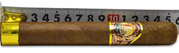 茄體結構精糧,呈現(xiàn)為深褐色,衣帽下端配有金色的印花雙標,茄體底端處配有純金色的標雙,雙重標環(huán)奠定了其尊貴的品質,使它看起來華麗無比。