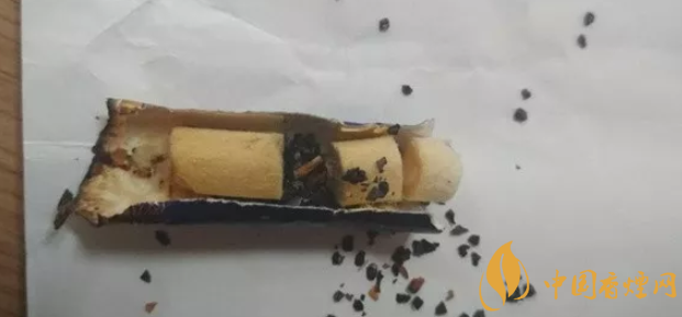 真龍海韻軟盒好抽嗎?煙支為普通煙長度,濾嘴也是正常長度。濾嘴紙一側(cè)印有真龍字樣,對應(yīng)那邊印有南海龍王字樣。濾嘴紙包裹濾芯非常緊,剪刀插不進去,上圖是樓主用小刀劃開的第三支煙蒂。整支濾芯分四個部位,從煙葉接觸處點來算是:長海綿濾芯→活性炭→短海綿濾芯→硬海綿濾芯圈。