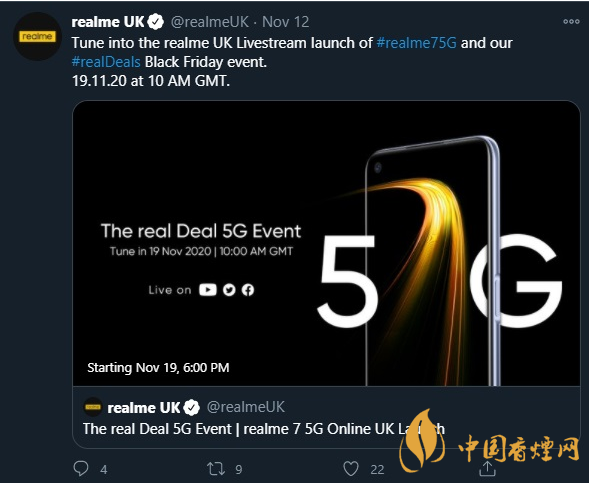 昨天,Realme75G通過(guò)了NBTC認(rèn)證。隨后,realme在Twitter上正式確認(rèn)了realme75G的發(fā)布日期:2020年11月19日。下面跟著小編來(lái)一起了解一下吧。