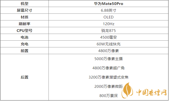 以上就是香煙網(wǎng)小編為大家介紹的華為Mate50Pro參數(shù)詳情的相關(guān)內(nèi)容了,希望對(duì)大家在選擇時(shí)有所幫助。了解更多實(shí)用手機(jī)相關(guān)咨詢,請(qǐng)關(guān)注香煙網(wǎng)。