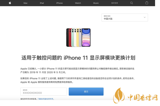 首先用戶需要到該界面輸入手機(jī)序列號,查詢是否屬于受影響的用戶。