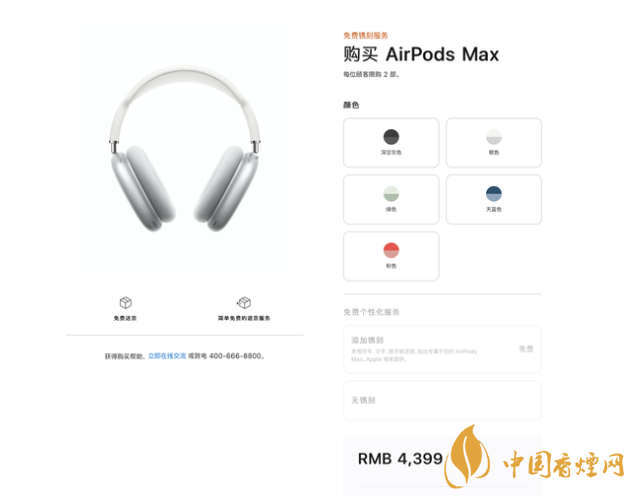 配色方面,AirPods Max共有深空灰色、銀色、綠色、天藍(lán)色和粉色五種色調(diào)。