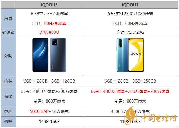 iQOOU3和iQOOU1哪個好 參數(shù)配置對比