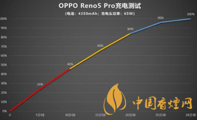 除了超長續(xù)航之外,OPPO Reno5 Pro還加入了65W超級閃充技術(shù),進一步提升快充體驗。從實際測試結(jié)果來看,如果從零開始進行充電,OPPO Reno5 Pro只要5分鐘就能充電24%,10分鐘就能充電46%,充到100%只需要28分鐘,充電速度非??臁<幢闶鞘謾C沒電了,OPPO Reno5 Pro也能快速回血,一會功夫就能完成充電工作,日常使用更方便。