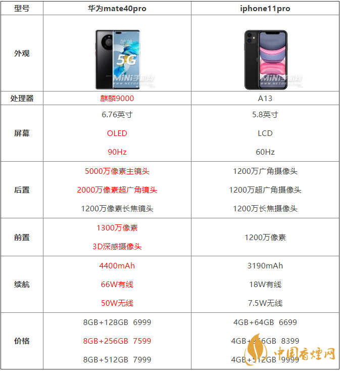 通過上面的介紹,相信大家對華為mate40pro和iphone11pro參數(shù)對比以及哪款手機更值得入手都有了一定了解了,希望對大家在選擇時有所幫助。了解更多實用手機相關(guān)咨詢,請關(guān)注香煙網(wǎng)。