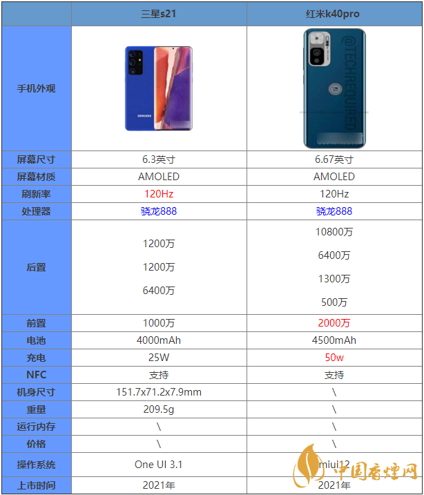 近期,即將迎來(lái)三星s21新機(jī)的發(fā)布,三星s21和紅米k40Pro有哪些區(qū)別?哪款手機(jī)更好?許多朋友對(duì)這兩款手機(jī)都十分關(guān)注,下面香煙網(wǎng)小編給大家?guī)?lái)三星s21和紅米k40Pro的詳細(xì)參數(shù)對(duì)比,感興趣的朋友一起來(lái)看看吧!