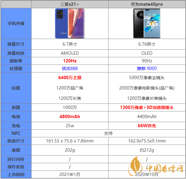 三星s21+和華為mate40pro哪款手機(jī)更好?三星s21+和華為mate40pro兩款非常熱門的旗艦手機(jī),那么小伙伴們要在其中選擇一個(gè)的話,到底是要如何選擇呢?下面香煙網(wǎng)小編將對(duì)三星s21+和華為mate40pro參數(shù)對(duì)比進(jìn)行介紹,一起來(lái)看看吧!