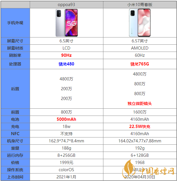 oppoa93和小米10青春版哪個好?這兩款手機價位都在千元機的范疇,那么oppoa93和小米10青春版有什么區(qū)別?哪款手機更值得入手?接下來香煙網(wǎng)小編為大家?guī)砹薿ppoa93和小米10青春版對比詳情,感興趣的朋友一起來看看吧!