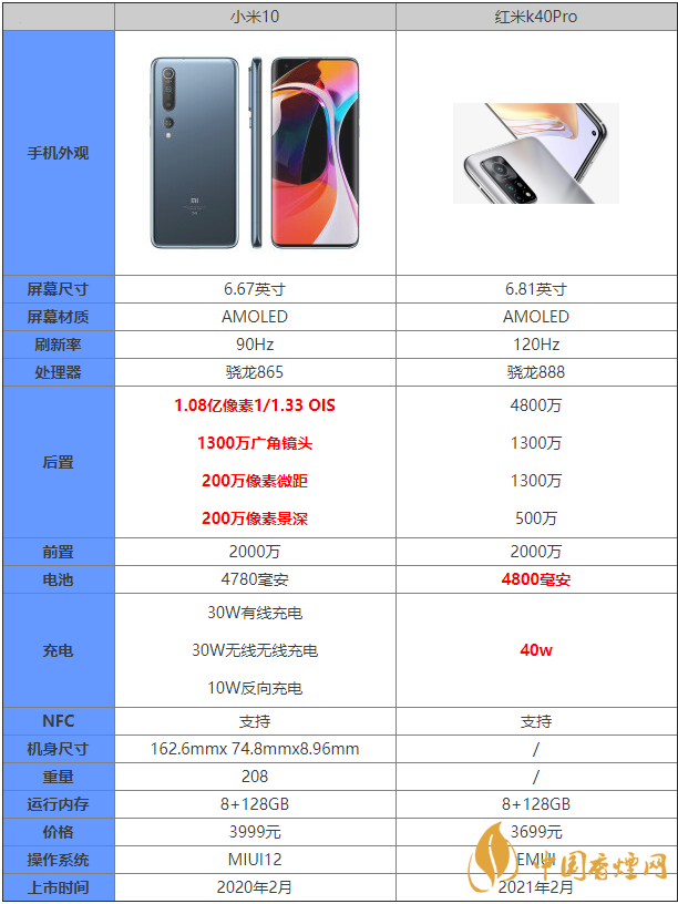 紅米k40pro和小米10有什么區(qū)別 參數(shù)配置對比