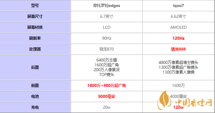 摩托羅拉edges和iqoo7哪款值得買-手機(jī)配置對比一覽