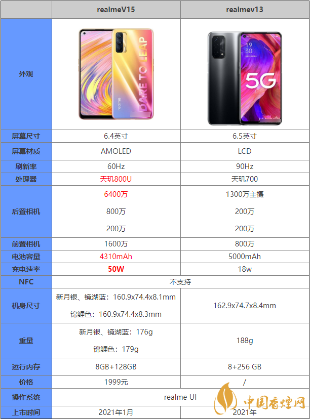 realmev13和realmev15是近期的新款手機,許多小伙伴對這兩款手機十分關(guān)注,那么realmev13和realmev15這兩款手機有什么區(qū)別?哪款更值得入手?下面香煙網(wǎng)小編將對realmev13和realmev15參數(shù)對比進行介紹一起來看看吧!
