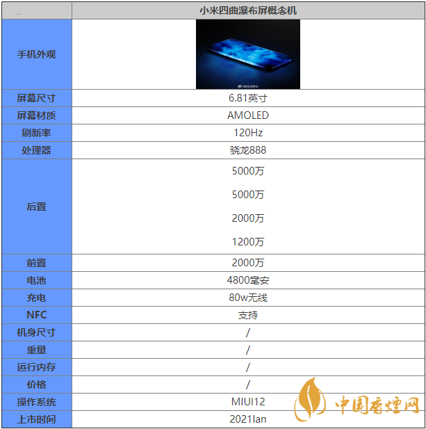 小米最近發(fā)布了一款小米四曲瀑布屏概念機(jī),那么小米四曲瀑布屏概念機(jī)怎么樣?這款手機(jī)的具體的參數(shù)是什么?接下來(lái)香煙網(wǎng)小編為大家?guī)?lái)小米四曲瀑布屏概念機(jī)參數(shù)配置詳情,快來(lái)看看吧。