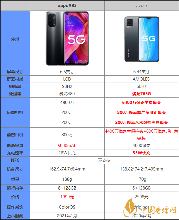 oppoa93和vivos7參數(shù)對比-哪款手機更值得入手