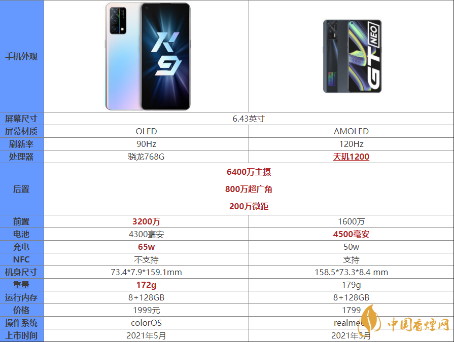 oppok9和真我gtneo哪個好-oppok9和真我gtneo參數(shù)配置詳情