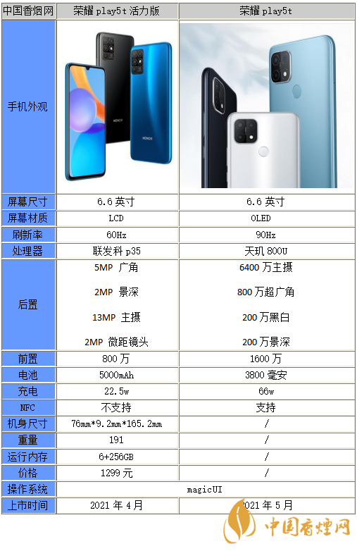 榮耀play5和榮耀play5t活力版參數(shù)對(duì)比