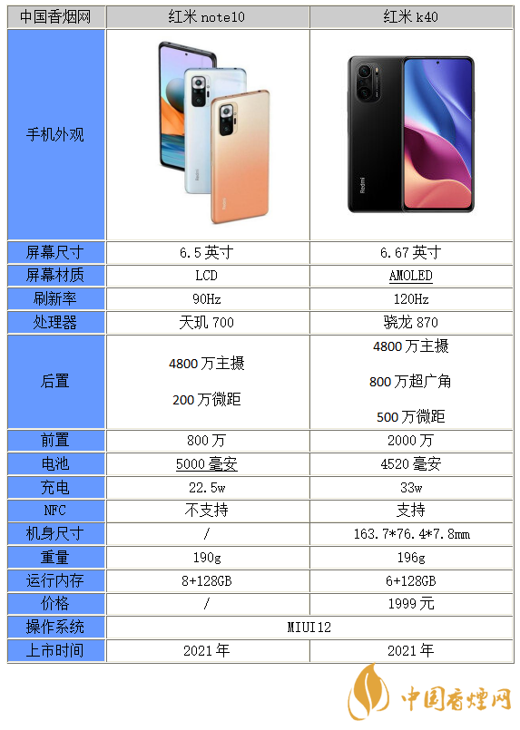 以上就是小編收集到的紅米note10和紅米K40參數(shù)對(duì)比-紅米note10和紅米K40性能分析的相關(guān)內(nèi)容,以上內(nèi)容均來(lái)源于網(wǎng)絡(luò),僅供參考,一切以實(shí)際為準(zhǔn),更多最新數(shù)碼資訊請(qǐng)關(guān)注香煙網(wǎng)。