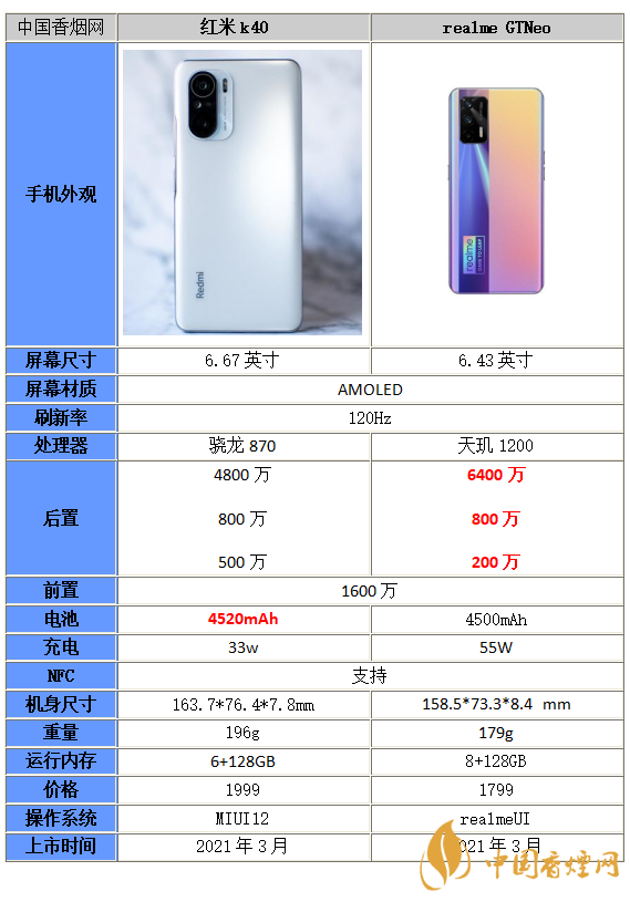 以上就是小編收集到的真我GTneo和紅米K40差別在哪-真我GTneo和紅米K40參數(shù)性能對比的相關(guān)內(nèi)容,以上內(nèi)容均來源于網(wǎng)絡(luò),僅供參考,一切以實(shí)際為準(zhǔn),更多最新數(shù)碼資訊請關(guān)注香煙網(wǎng)。
