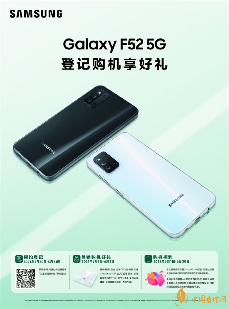 三星 Galaxy F52 5G 將于 5 月 20 日開(kāi)啟國(guó)行預(yù)約,6 月 1 日正式開(kāi)售,海報(bào)與真機(jī)圖已曝光。