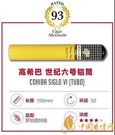 高希霸世紀(jì)六號(hào)規(guī)格獨(dú)特,只出現(xiàn)在這個(gè)古巴雪茄品牌中。強(qiáng)壯和精致外觀,這世紀(jì)六號(hào)散發(fā)出奶油,皮革,可可和甜香料的味道。