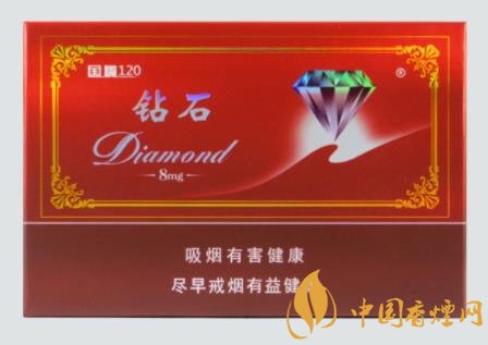 俗名又叫做國(guó)嘴120。這款鉆石包裝喜慶之中不失簡(jiǎn)約典雅,據(jù)說(shuō)這款好幾年前就是全開(kāi)包裝。煙嘴特長(zhǎng),味道清淡,香氣一般,感覺(jué)中規(guī)中矩,但比荷花好些。當(dāng)時(shí)拿到一看就感覺(jué)煙嘴很長(zhǎng),和煙卷幾乎是一比一。口感還不錯(cuò),和中華還是有的比。包裝很上檔次,過(guò)濾嘴很長(zhǎng),中間是空的,還申請(qǐng)了專(zhuān)利,口感不敢恭維,我買(mǎi)的焦油是8mg的,淡淡的。