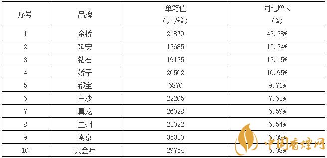 重點卷煙品牌2017年結(jié)構(gòu)增長率前10排序表