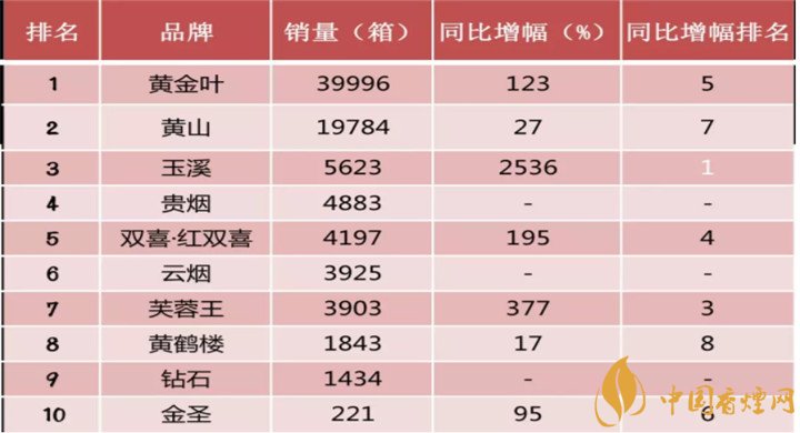 玉溪、貴煙、云煙等增幅迅猛